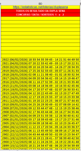 Dupla Sena - Atualizada até o concurso 2922!!!