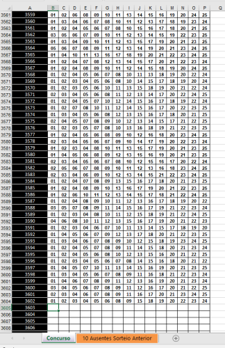 10 dzs não sorteadas do último para conseguir Linhas com 6 ou 7 ou 8 ou 9 ou 10 pontos em Linhas de 10 dzs no concurso seguinte!!! Atualizada até 3602. 1.5.0