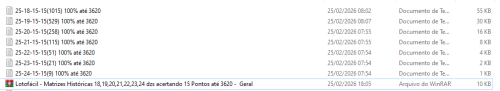 Matrizes Históricas para acertar 15 Pontos com 18,19,20,21,22,23,24 dzs em todos os concursos do 0001 até 3620.