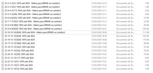 Matrizes Históricas para Acertar 15 Pontos em Linhas de 15,16,17,18,19,20,21,22,23,24 DZs até 3634.