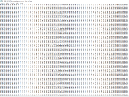 Matriz Histórica Lotomania 100-65-20-20(2062) até 2897 e Matriz 100-65-20-20(12671) para qualquer concurso.
