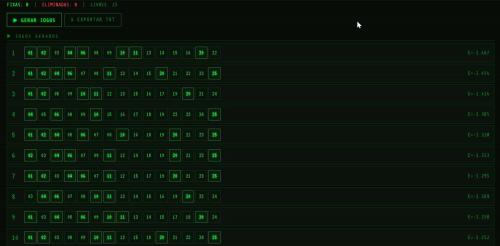 Há no soft 3 matrizes uma que gera 10 cartelas com 23 dezenas em grupos (com a ideia de Munir Pé Quente);